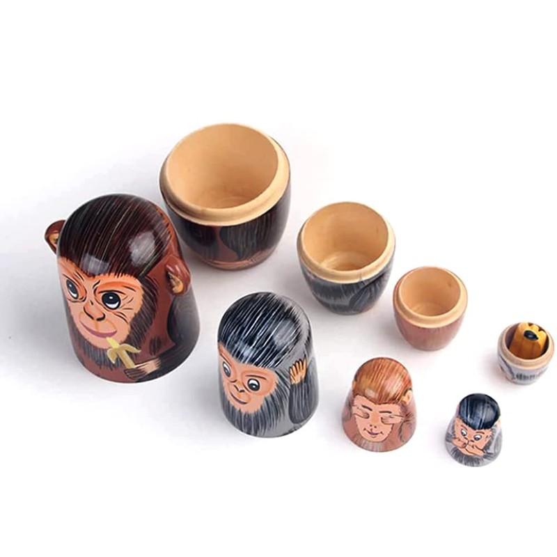 Matrioska Matrioska Set of 5 Funny Monkeys and Nesting Bananas Matrioska Follia Russian Doll Handmade