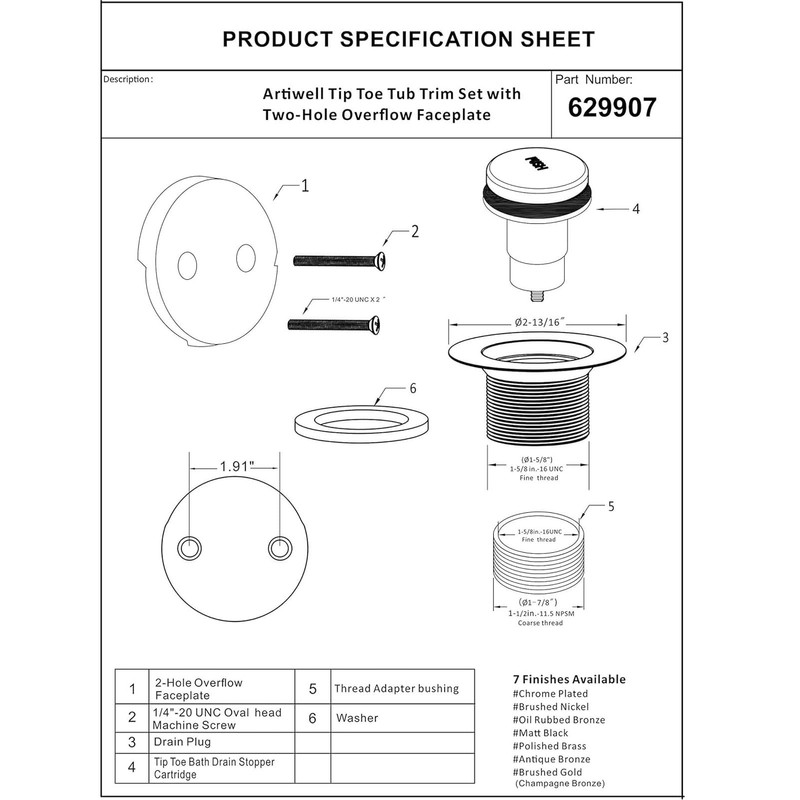- COMPATIBILITY: Universal fine/coarse thread design fits most standard bathtub drains, making it a versatile replacement option