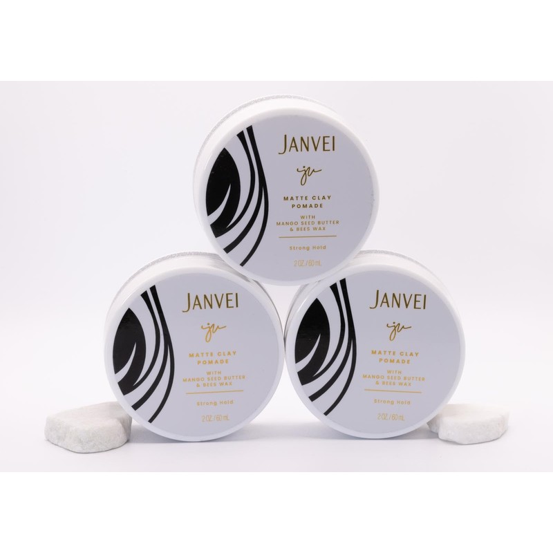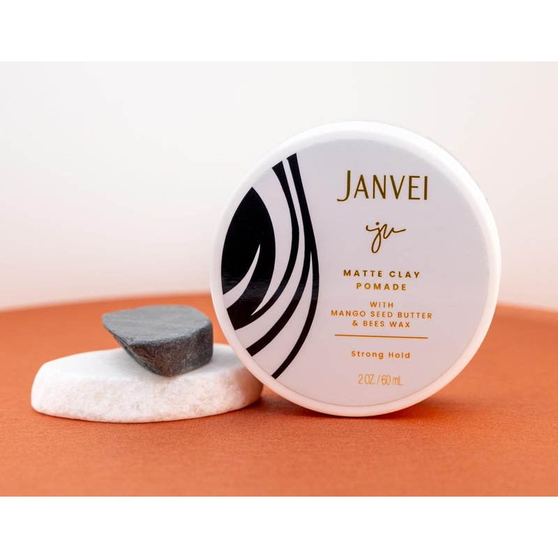 Experience the perfect hold and natural texture with Janvei's Matte Clay Pomade. This 2 oz. / 60 mL pomade is made with a unique blend of natural waxes and plant proteins, delivering strong hold and fullness to all hair types. Free from harmful chemicals, it contains organic ingredients like Aloe Vera, Green Tea, Lavender, and Mango Seed Butter, providing nourishment and protection to your hair. Apply a small amount to damp or dry hair, style as desired, and enjoy the matte finish that lasts all day. Perfect for creating textured, separated styles with ease.