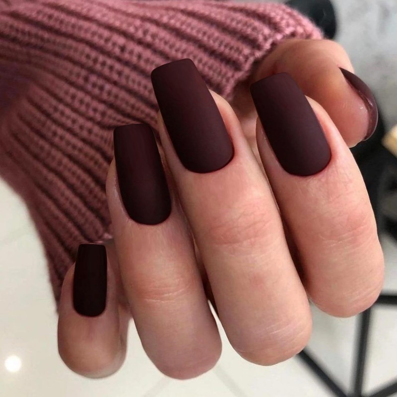 - Get Sooooo Many Compliments on these Matte Dark Red Coffin Nails:These full cover long square acrylic nails are also thin enough to feel natural but thick enough that they don’t bend, and with a professional nail glue they aren’t budging! No splitting when trimming them, easy to file!