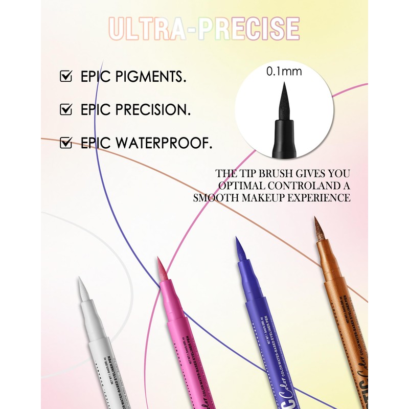 - Matte colours: 12 colours for a vibrant, liquid eyeliner are matte with super high pigmentation, from classic black and white to bold blue, green and more. Perfect for glamorous, parties, shows, or just an everyday look.