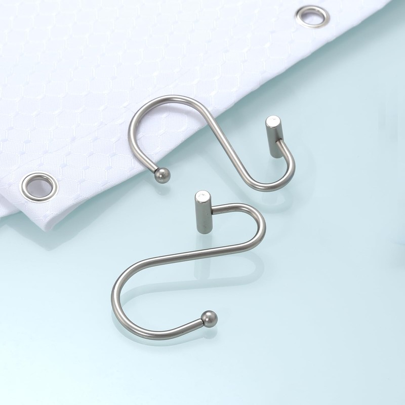 3、 S-shaped T-bar design, use this shower hooks for shower curtain without the trouble of falling.