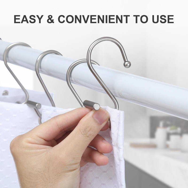 • [MULTI-PURPOSE SHOWER HOOKS]: In addition to hanging shower curtains, the shower curtain hooks rust proof can also hang curtains, towels, kitchen tools, clothes, plant hanging pots, bird feeders, patio lights, etc.