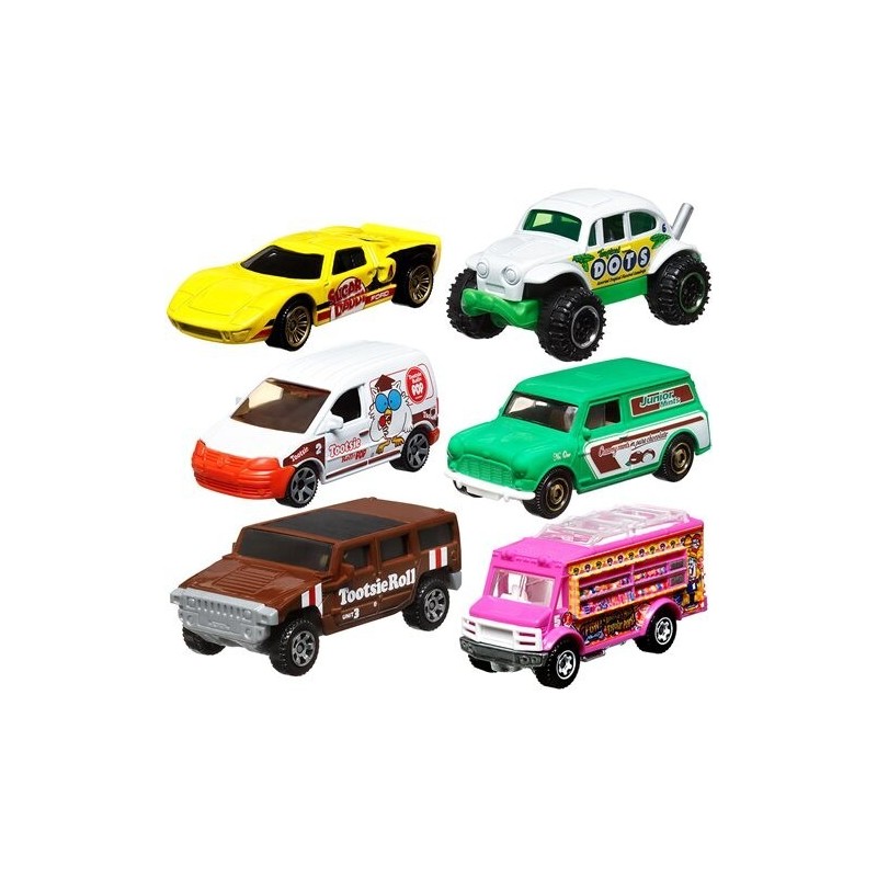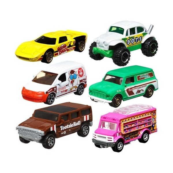 Matchbox delivers sweet die-cast vehicles with the Matchbox Candy collection. Each 1:64 scale car, truck or van features fun decos focused on popular sweets like Blow Pop, Tootsie Roll, Dots, and more. The creative packaging graphics enhance collectability and are primed for the coolest display. Kids and collectors will crave them all. Ages 14 and up.| Brand: | Mattel |