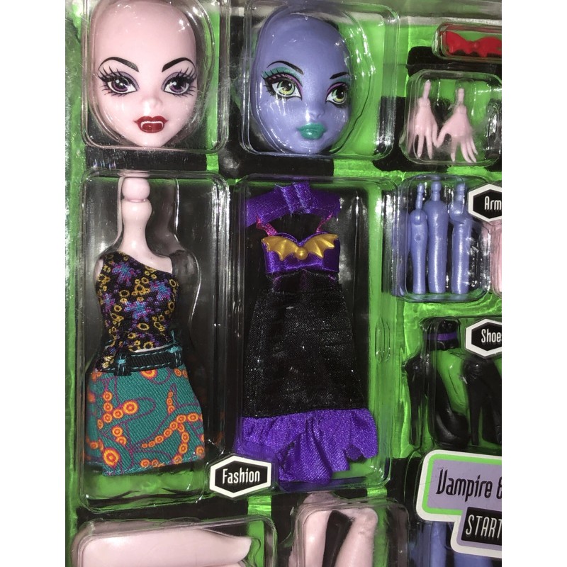 2012 Monster High Create -A-Monster by Mattel includes 250+ Pieces for you to build your own monsters. Item Features include those for a Vampire and a Sea Monster but can be mixed with other sets for more options.