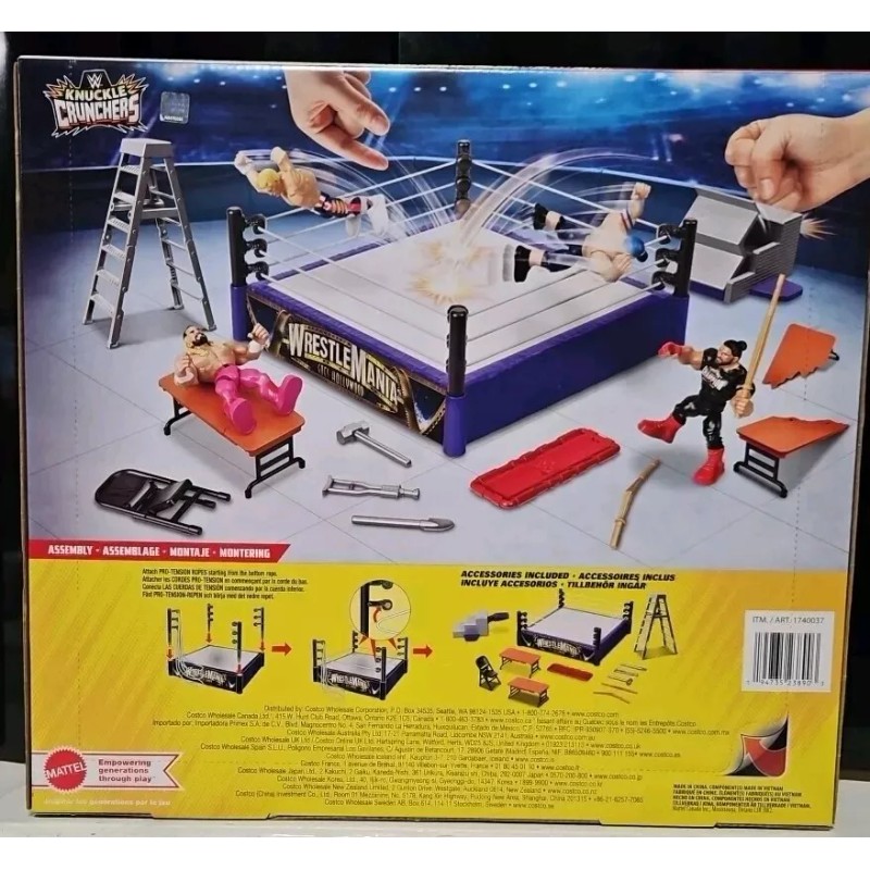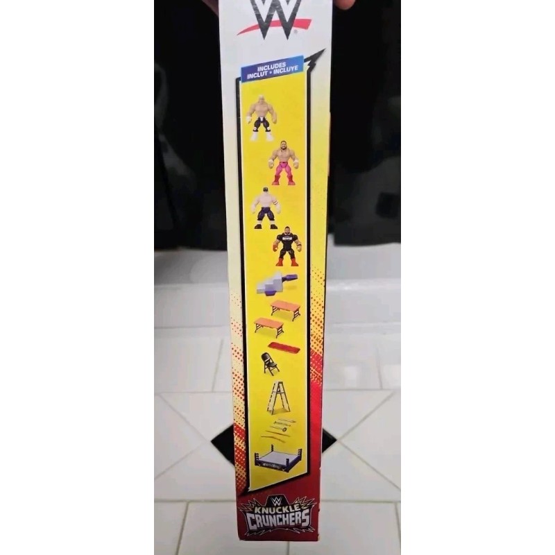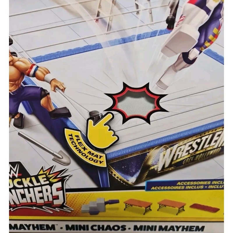 With figures from the WWE TV show, this playset is a must-have for any young fan. The set includes everything needed for hours of imaginative play and is manufactured with high-quality materials. Don't miss out on this awesome WWE Knuckle Crunchers Mini Mayhem Ring Bundle!
