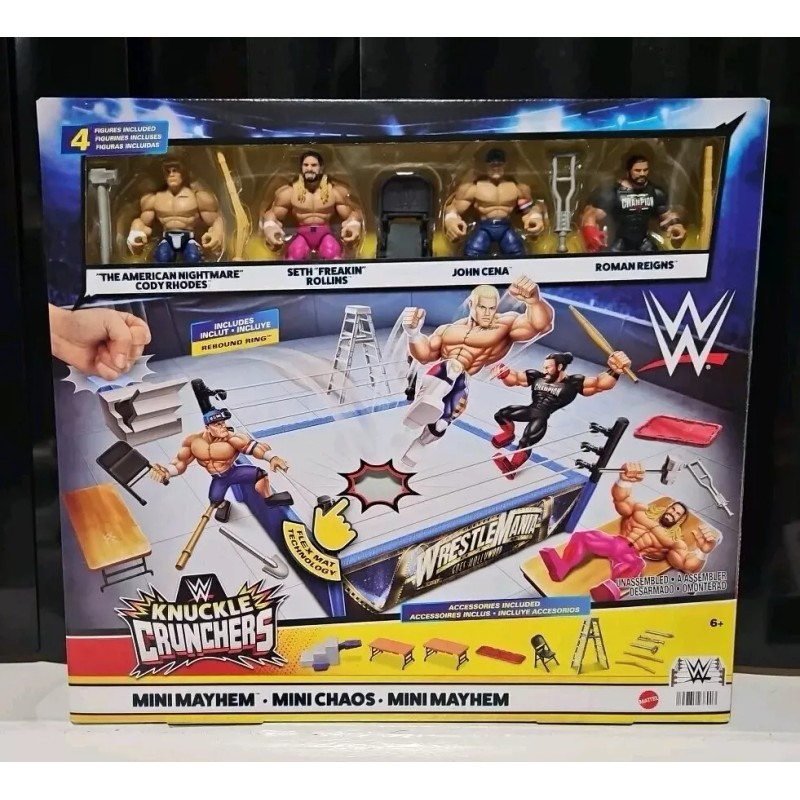 Mattel WWE Knuckle Crunchers Mini Mayhem Ring Bundle - New