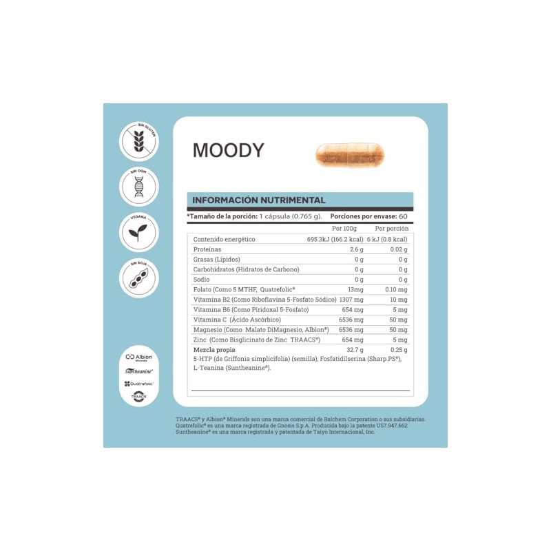 MATTER SMART NUTRIENTS Moody Suplemento alimenticio con Aminocidos, Vitaminas y Minerales apoya la sntesis de serotonina efecto relajante