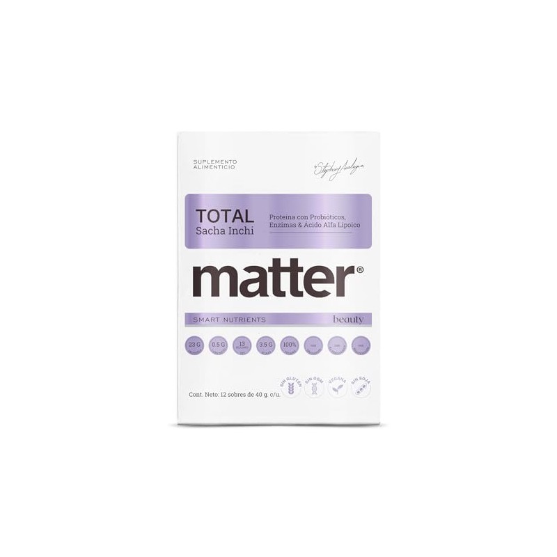 MATTER SMART NUTRIENTS - Total Beauty Caja con Mix de sabores con 12 sobres Suplemento alimenticio Bebida de Proteína con Probióticos, Enzimas y Ácido Alfa Lipoico | Mejora la digestión y la textura de la piel, firme e hidratada