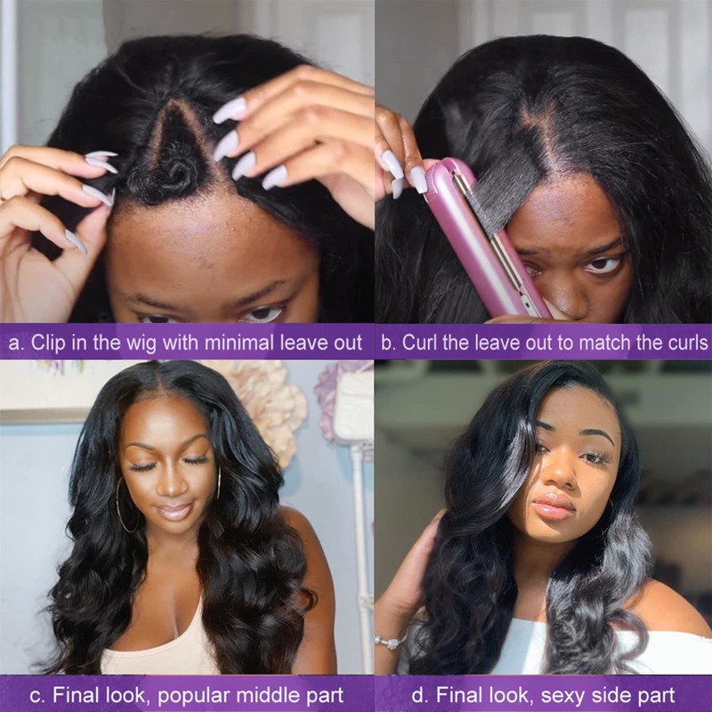 • 【V Part Wigs】v part wig Body wavy upgrade u part wigs, no lace no glue no leave out, No Sew-in, blend with your real hairline, matches the roots of your hair, beginner friendly.