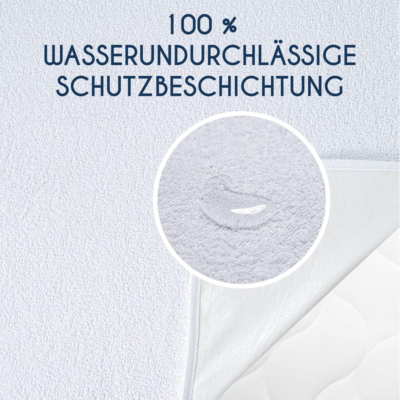 - Mattress protector 100% waterproof and breathable: the mattress protective cover is waterproof and offers moisture protection. Effectively removes dust, stains, sweat, urine and other liquids: Extend the life of your mattress and save in the long run! 160 x 200 cm refers to the size of the mattress, the dimensions of the protective cover may vary by a few centimetres to better fit.