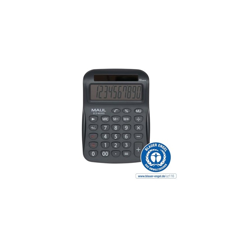 - Calculator: The MAUL desktop calculators of the MJ series are available in two different sizes. So both a small and large calculator can be selected. In addition to 5 different colours, there is also the option of a solar calculator as an Eco version to choose from.