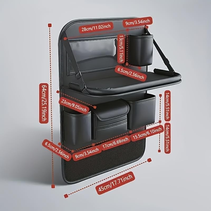 This PU leather car seat multifunctional folding table rear storage bag is the perfect companion for your travel! Made of high-quality PU leather material, wear-resistant and waterproof, easy to clean. Multi functional design combined with folding table and storage bag functions to meet your various needs. The large capacity multi compartment design can store books, tablets, snacks, toys, and other items. The built-in folding table board is convenient for rear seat passengers to dine, work, or entertain. Suitable for most car models, easy to install, no tools required. Whether it's daily commuting or long-distance travel, this storage bag can provide you with a convenient and comfortable experience!