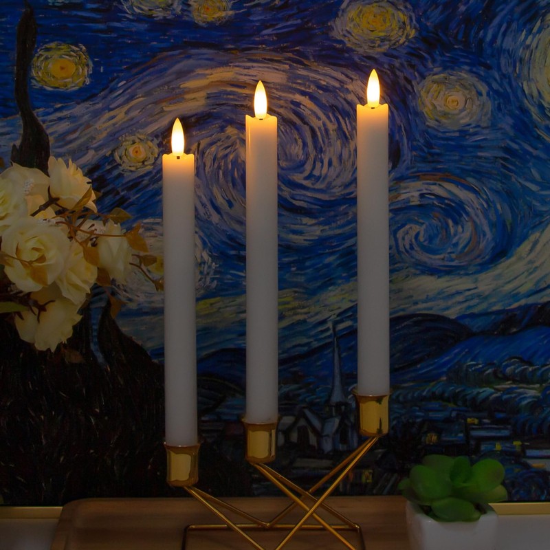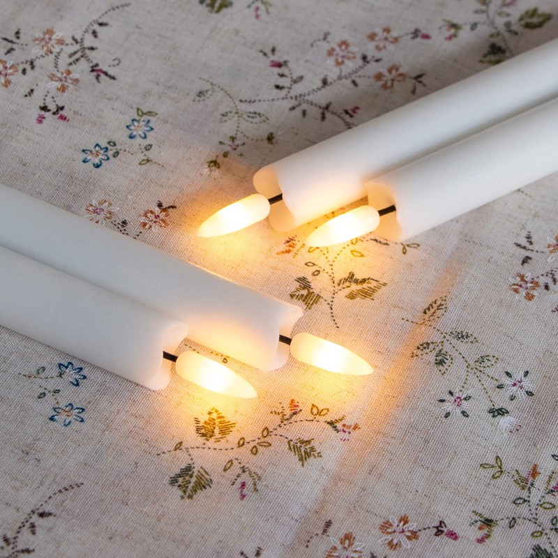 - LED TAPER CANDLES: You will receive 2 white flameless taper candles(2x25cm), one remote control and one manual. Our flickering taper candles are made of the highest quality real wax and have been strictly tested before leaving the factory to ensure the flameless taper candles are durable and not easy cracked