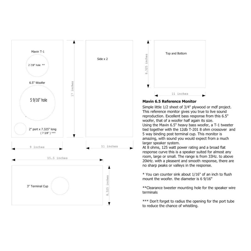 Mavin KRK Studio Reference Audiophile Monitor KRK 6.5" Kit Components Plans 8Ω 125 Watts