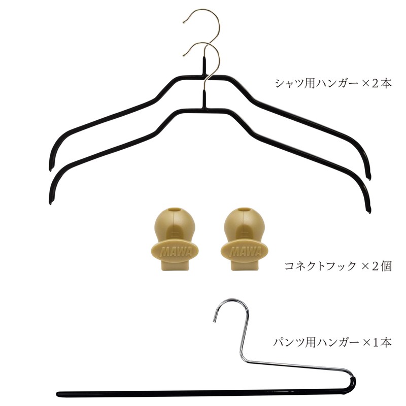 MAWA x Seiei Original 120538 Student Hanger Set for Pants, 5-piece Set, Black, MAWA Hanger, Shirt Hanger, Pants Hanger, Space Saving Hook