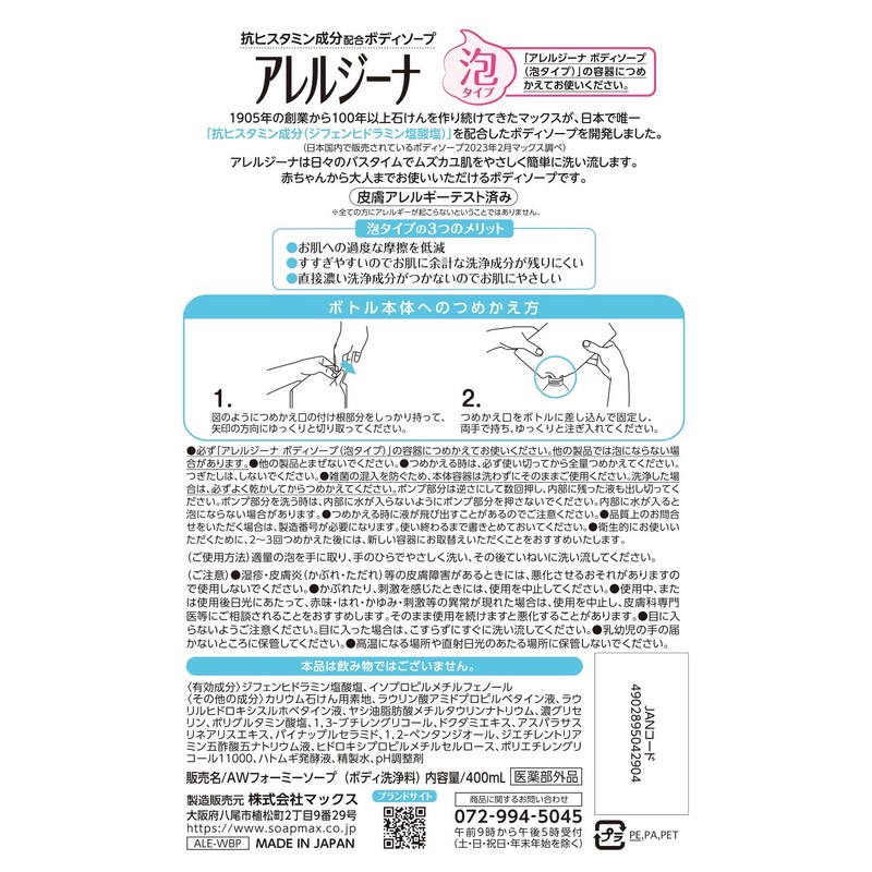 Max Allergina Foam Body Soap Refill with Antihistamine Ingredients