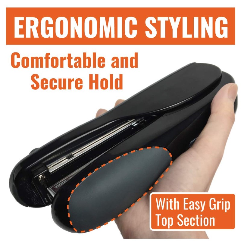 - Flat-clinch full-strip stapler with easy effort "twin lever" mechanism, one-touch quick-loading operation and 30-sheet capacity.