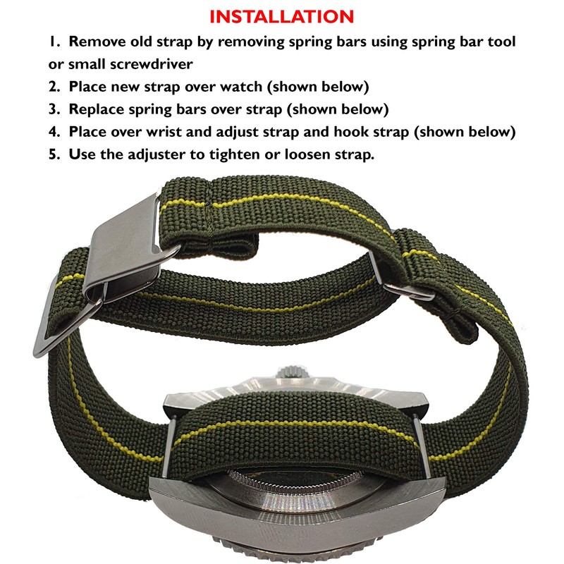 - ✅【Neat Clean Stitching】This elastic nylon watch straps neat, clean stitching showcases attention to detail and craftsmanship. This meticulous stitching not only enhances the strap's durability but also adds a touch of elegance to its design. This combination makes it a stylish and reliable choice for watch enthusiasts seeking quality and aesthetic appeal in their timepiece accessories.