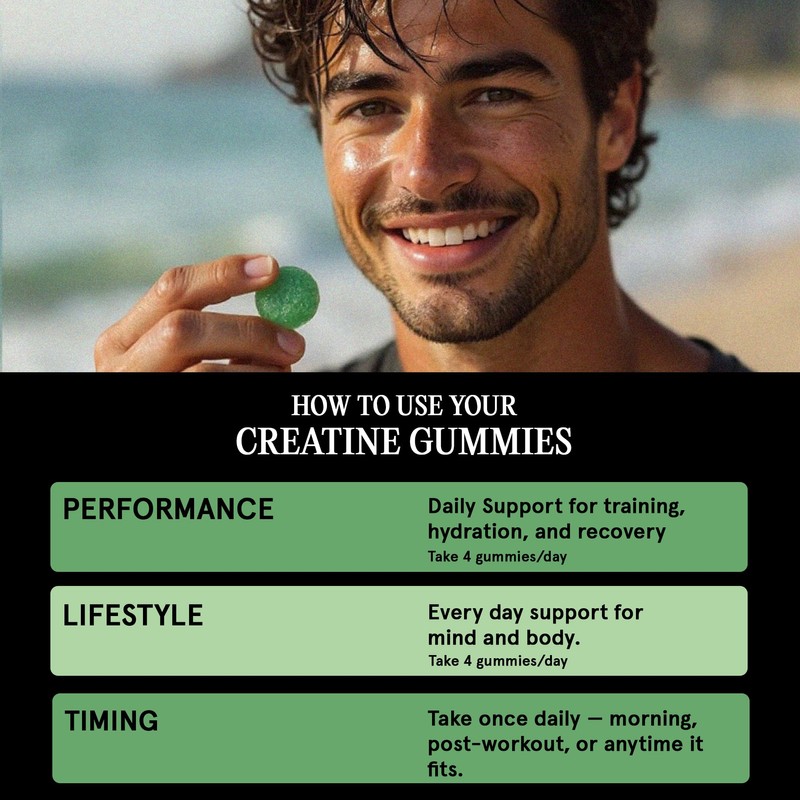 - Full 5 g Creatine Monohydrate Gummies D Each serving delivers 5 grams of pure creatine monohydrateDthe same clinically studied dose shown to boost strength, muscle growth, and workout performance.