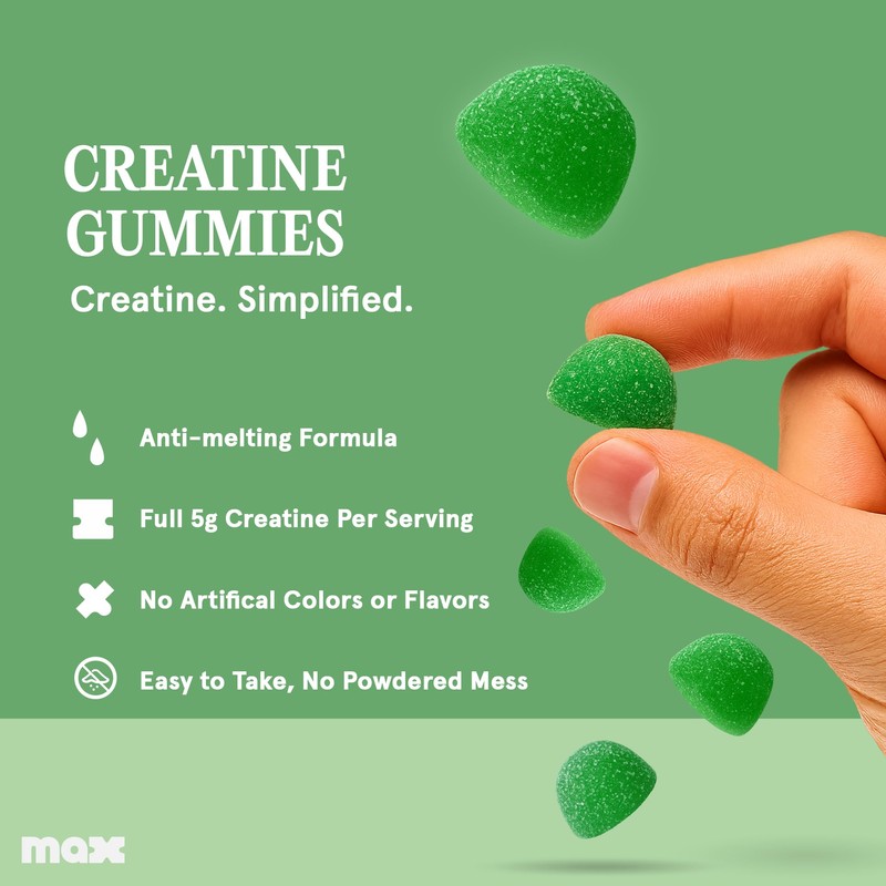 Max Gummies MAX Sugar Free Creatine Monohydrate Gummies - 5g Per Serving, 120 Count - Vegan, Lab Verified, Nothing Artificial ?C Sour Green Apple