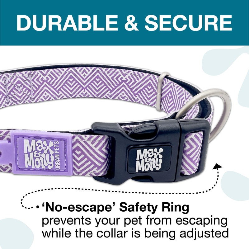 Max & Molly Urban Pets Smart ID Dog Collar - Soft Neoprene, Waterproof, Machine Washable, Power Buckle, Gotcha! QR Tag & Custom App Profile, Mykonos Lilac M
