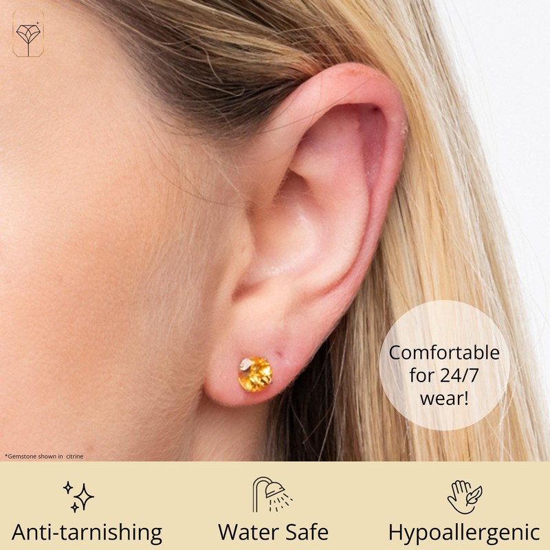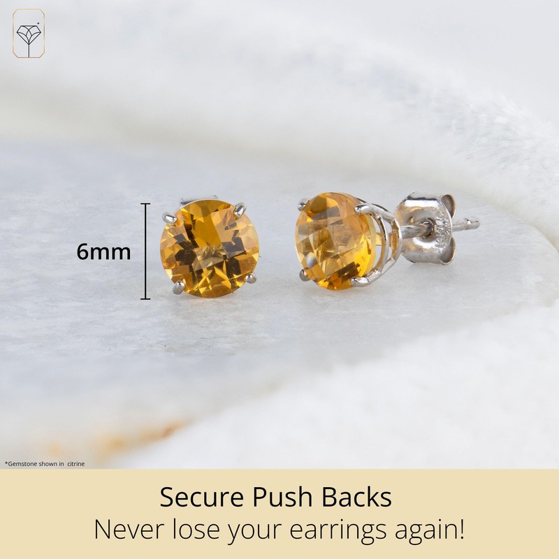 - White gold stud earring featuring prong-set Round shape Checkerboard cut Gemstone