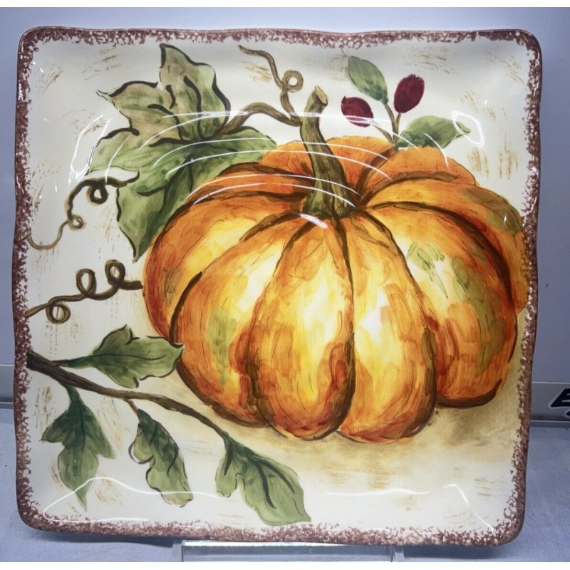 Maxcera 2 Pcs Set Pumpkin Salad Plates Thanksgiving Square Maxcera New 8.5" Brown Trim