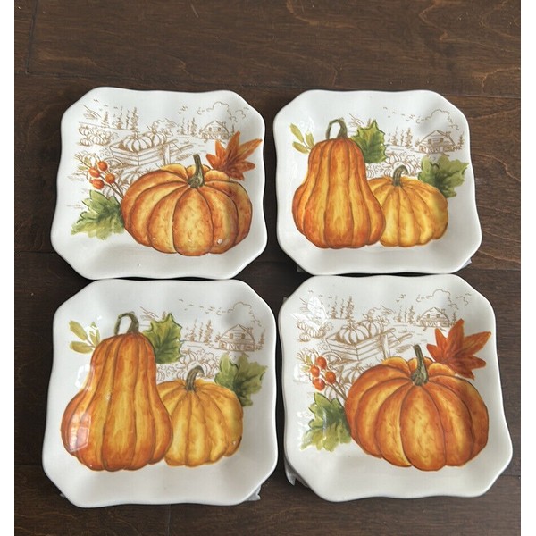 MAXCERA Set of 4 Pumpkin "Give Thanks" set of 4 porcelain Thanksgiving/ Halloween/ Fall Salad/ Dessert Plates.