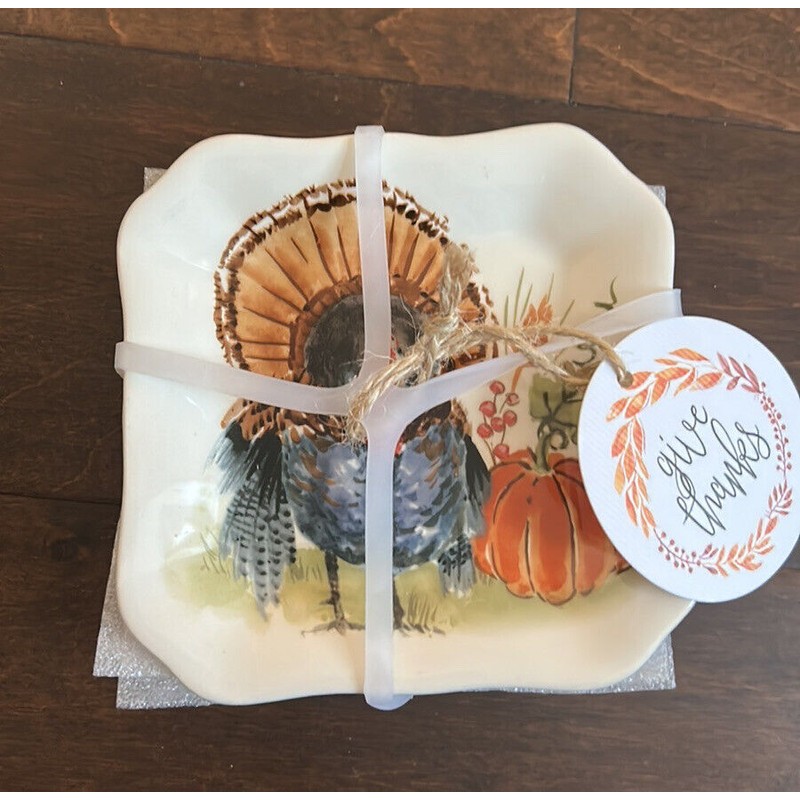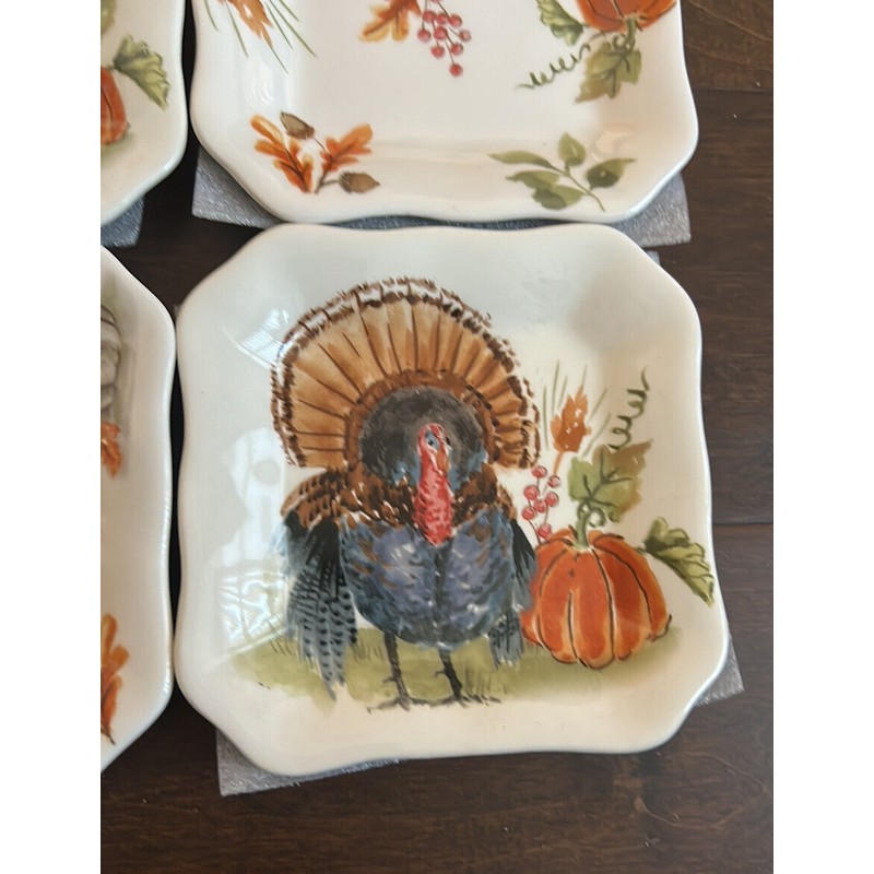 MAXCERA Set 4 Pumpkin Turkey Thanksgiving Dessert Appetizer Plates