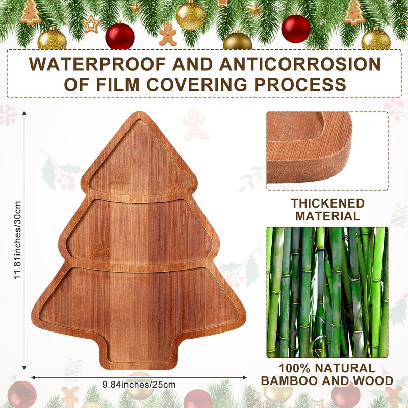- Inclusive Package: each package includes 1 piece of Christmas tree board for food; This standalone piece can make a statement on its own and becomes the ideal focal point for your Christmas decoration; The tray is designed with 2 compartments, which can be applied for snacks, cakes, nuts, sandwiches, fruit, butter, deli, coffee cups, and is also ideal for storing scattered coins, keys and more