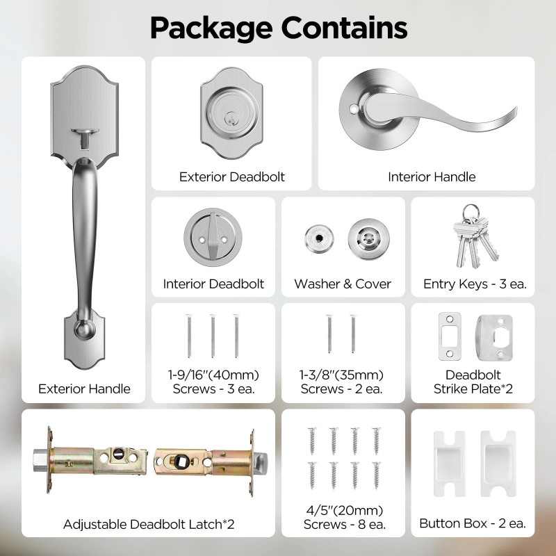 Advanced Upgrading Handleset with Lever: Our classic front door handle and deadbolt set adopted with zinc alloy material, door latch spring and structure upgraded, which increase the service life and door switch smoothly to a much greater extent!