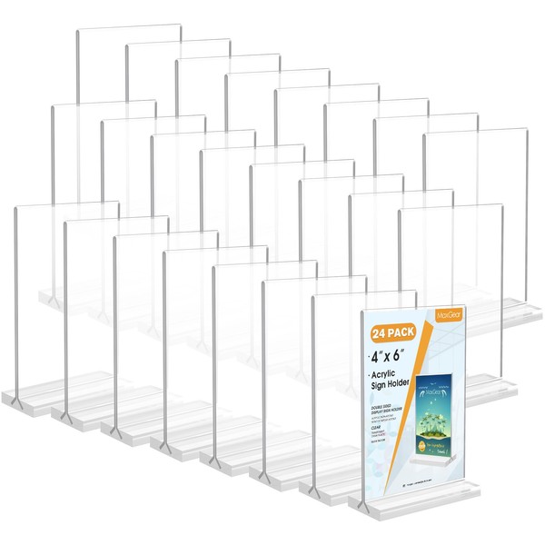 MaxGear 4x6 Acrylic Sign Holder 24 Pack, Double Sided Display Stand, Clear Paper Holder Picture Frame, Plastic Menu Holder Photo Frame Poster Stand for Stores, Restaurants, Hotels, Office