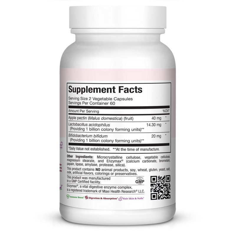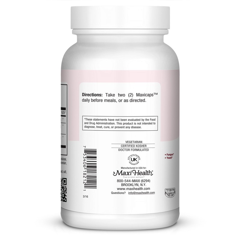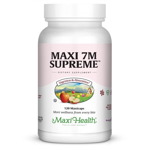 Maxi 7M Supreme is probiotic in a capsule. Probiotics are live organisms (which need to be abundant) in your intestines to support assimilation of nutrients and infection prevention.Maxi 7M Supreme has both of the most important probiotics that you need! Lactobacilius acidophilus (providing 1 billion culture forming units) and Bifidobacterium Bifidum (1 billion culture forming units) which can replenish and even enhance the correct quality and quantity of healthy bacteria lost. See the table below for how it is lost and what it means to have it restored.Healthy gut bacteria can be lost due to:Eating overly processed or artificial foods, Not getting enough active cultures from foods, Use of antibiotics or other medications whose side effects destroy healthy intestinal organisms, Diarrhea.Restoring healthy bacteria can:Protect against suffering from yeast, histamines, fungus (such as candida), and other internal pathogens, Aid in the digestion of carbohydrates and diary, Relieve many causes of bloating, craps, and diarrhea, Support for food sensitivities.Apple pectin is included to support healthy digestion, promote normal elimination, and cleanse the intestinal tract of impurities.Let the Maxi 7M Supreme work for your family!Our uncompromizing commitment to quality begins with selecting the finest raw materials from across the globe, to high standard manufacturing practices in GMP Certified, in the USA.All Maxi Health products are certified kosher, under the Orthodox Union (OU) and the Udvari Kashruth (UK). Legal Disclaimer: These statements have not been evaluated by the FDA. This Product is not intended to diagnose, treat, cure or prevent any disease.