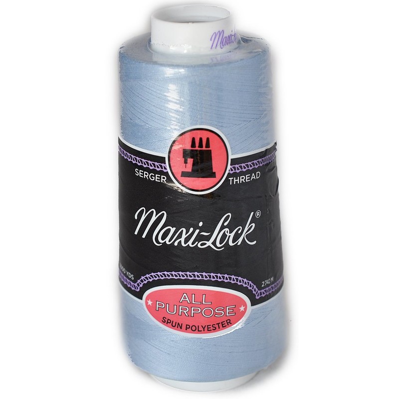 Maxi-Lock Cone Thread - Lucerne Blue Stock up on quality serger thread Use with almost any fabric. 40 wt./2ply 100% polyester. One 3,000 yd. cone. MLT-033 ML-32597