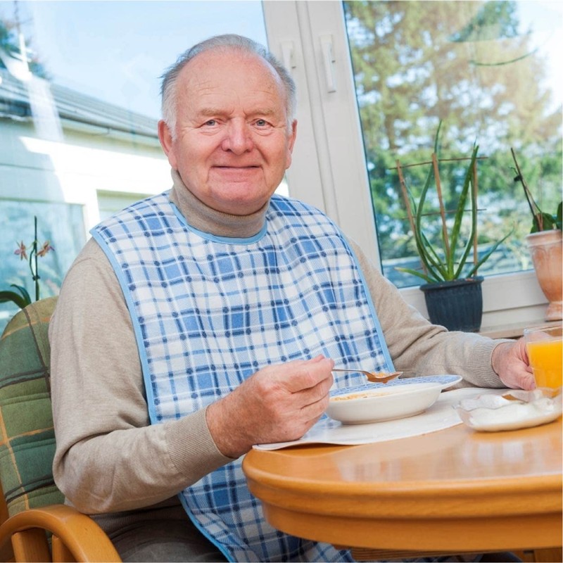 - Easy to use: simply hang around your neck with Velcro and the apron sits in place. The Velcro attached and removable napkin is very helpful for wiping the mouth and always at hand.