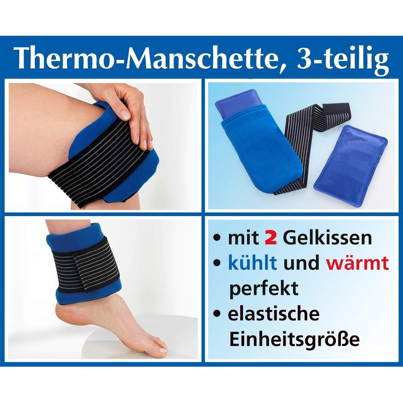 - Easy to use: heat the gel cushion in the microwave or cool in the refrigerator, insert into the included fabric cuff and attach to the affected area