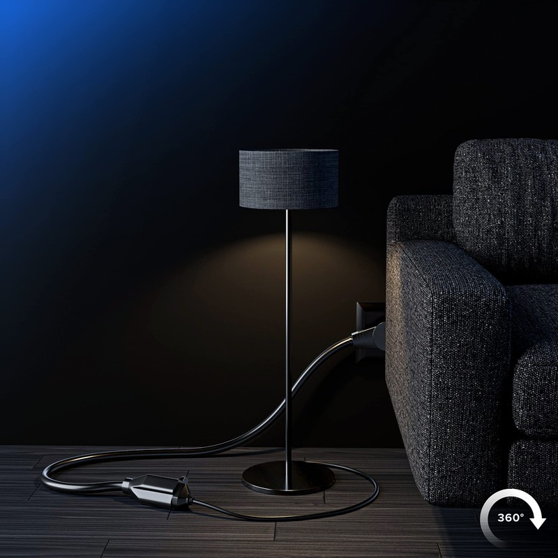 - SPACE SAVER: Convert your standard AC power cord to a slim rotating plug, providing angular flexibility. Plug into the top outlet and still have usage of the bottom outlet with this rotating cord.