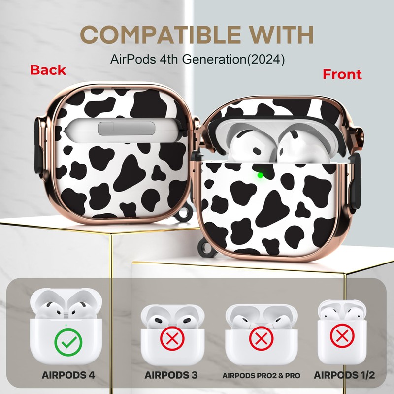 Maxjoy for AirPod 4 Case with Lock, Cute AirPod 4th Generation case Lock Protective Hard Case for AirPod 4 Gen for Women Men with Keychain for Airpods 4th Generation Charging Case 2024, Cow Print