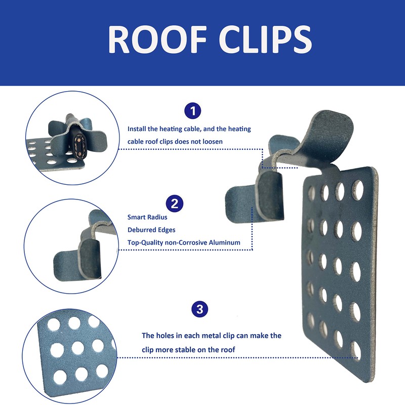 - 60 pcs pack aluminum heat cable roof clips for approximately 14 linear feet of the roof edge