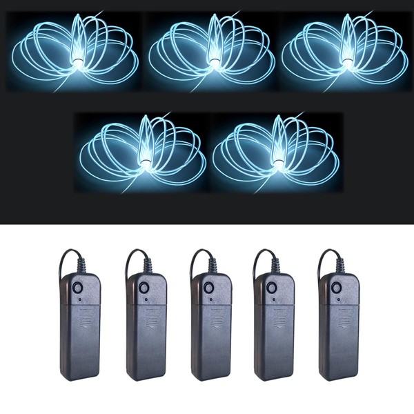 MaxLax EL Wire 5 Pack, 9ft Neon Light Wire Noise Reduction with Battery Pack(9ft-White)