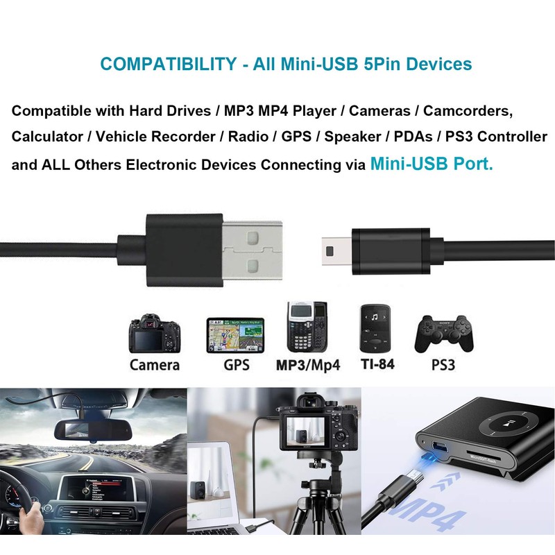 【Mini USB-B port】Mini USB Cable Connection - The cables are built with mini port, exclusively for the devices that has mini connectors.Please make sure you need a MINI USB CABLE before your purchase.