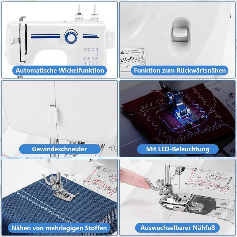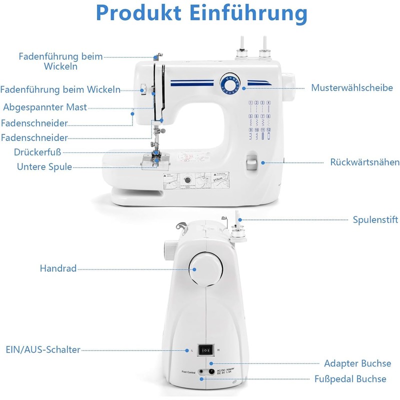 - 【12 Stitch Patterns and Reverse Sewing】: With 12 kinds of stitch sewing modes as straight, "Z", decorative, buttonhole and blindstitch, etc. With reverse sewing function, selecting the reverse sewing mode trigger to reverse sewing. The knob number corresponds to the different sewing patterns, and the body comes with LED lighting, simple and easy to operate, perfect for beginners and all ages.