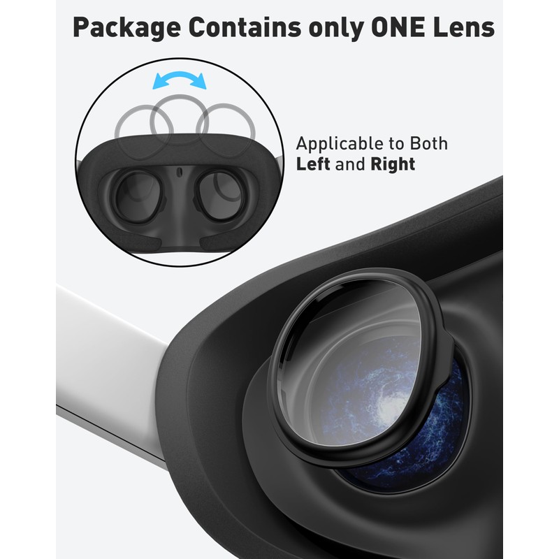 Maxonar VR Quest 3 Near-Sighted Glasses LensSay goodbye to the hassle of traditional glasses that can scratch your VR lenses and obstruct your visionKey Features:. Optimal Compatibility: Our lens is specifically tailored for the Quest 3 model. Enjoy every detail of your virtual surroundings without the worry of discomfort or impairment from standard eyeglasses.. User-Friendly Installation: Quick and effortless installation. Simply align the lens with the designated clips and press downit's that easy. For removal, just locate the tab and lift to detach.. Dedicated Customer Support: At Maxonar, should you have any questions or need assistance with your purchase, our friendly support team is here to help. We're committed to ensuring that you enjoy your VR adventures to the fullest.Important Note:- These lenses are not suitable for astigmatism correction.- Each package contains one lens only.