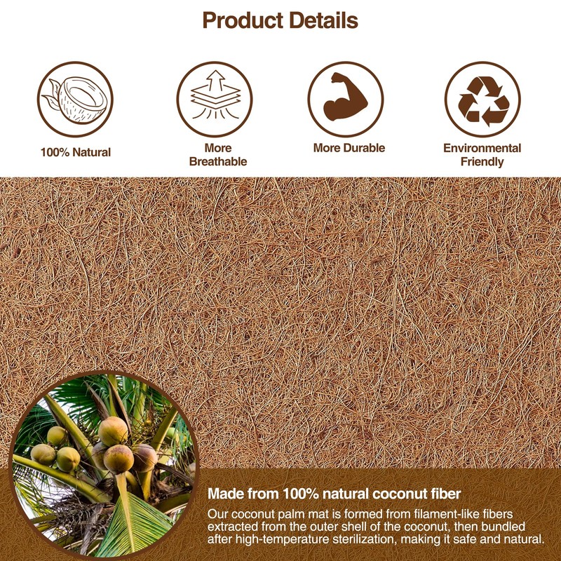 - 【Lightweight, Breathable, and Easy to Customize】Lightweight and breathable, the coconut fiber mat is durable yet easy to handle and move. It can be easily cut to fit various shapes and sizes, making it convenient to change and clean for both plant and pet care.