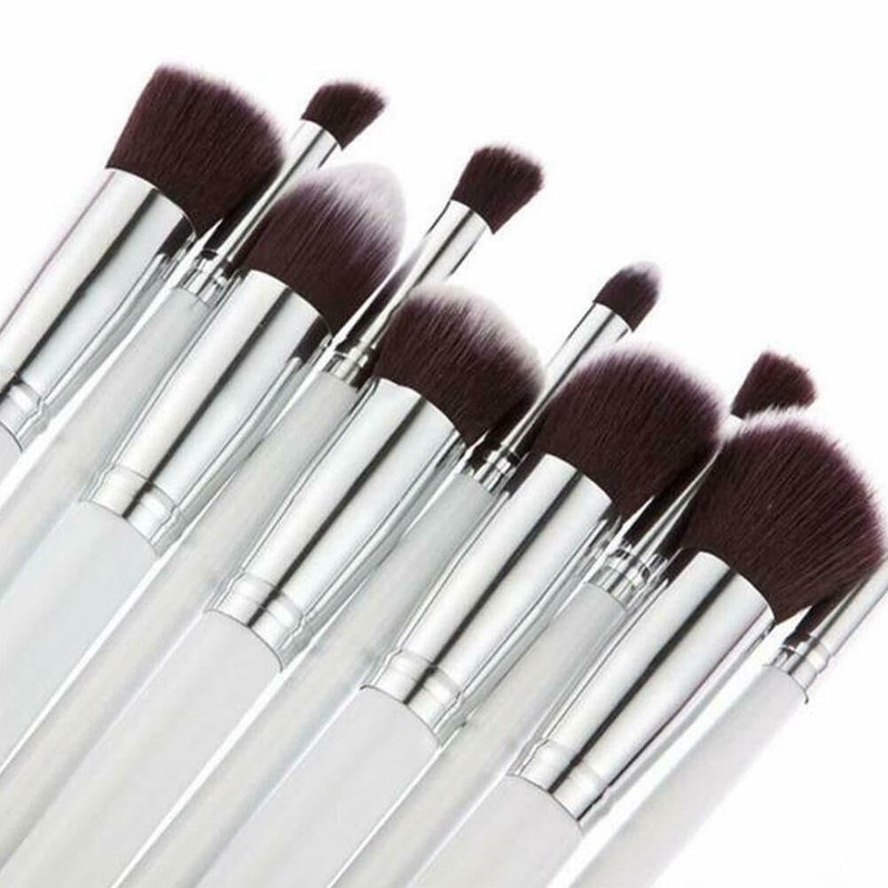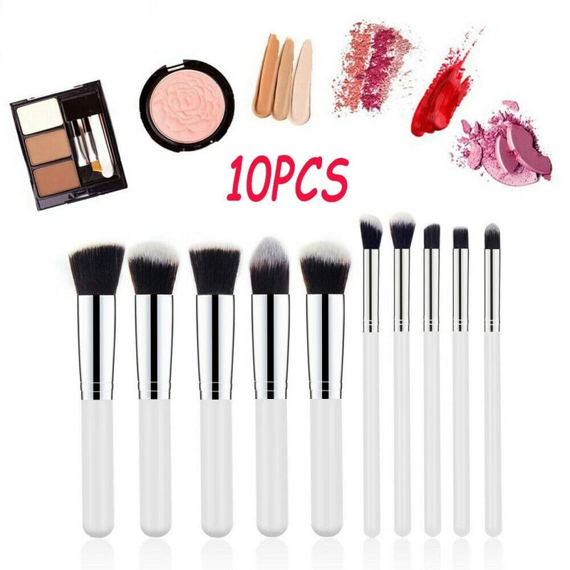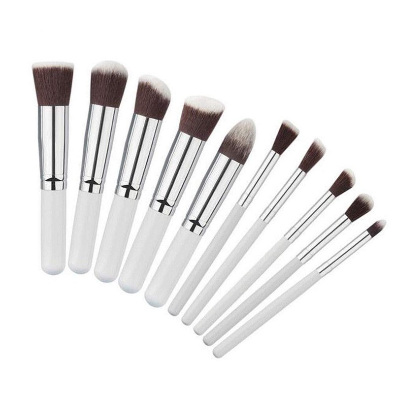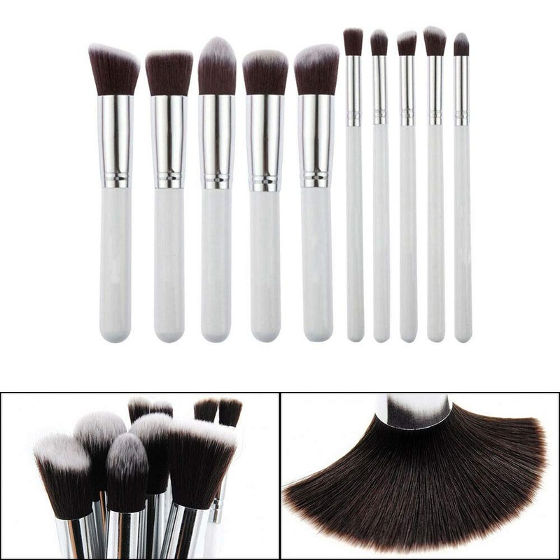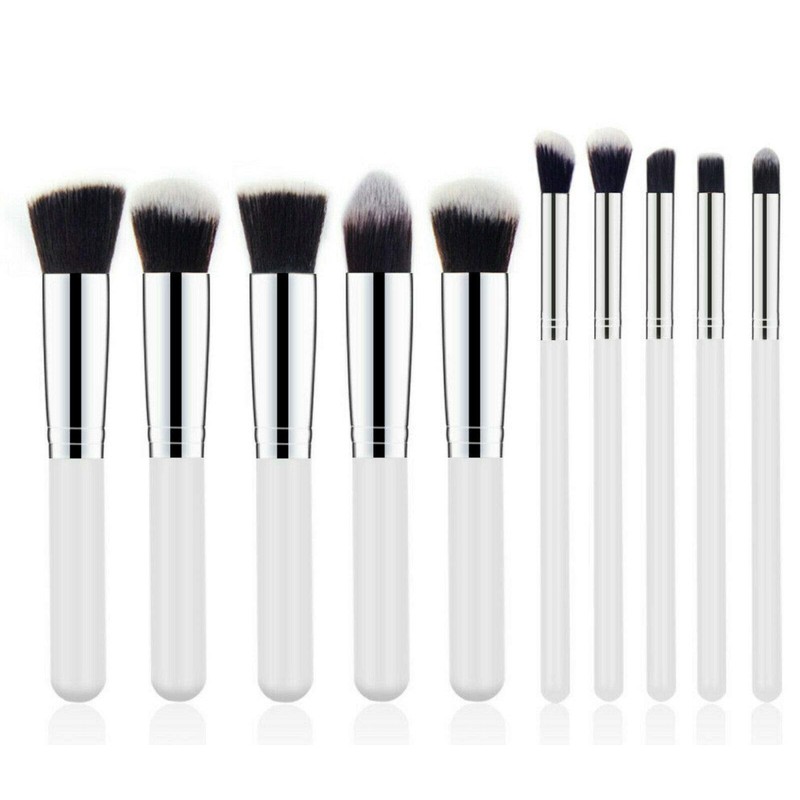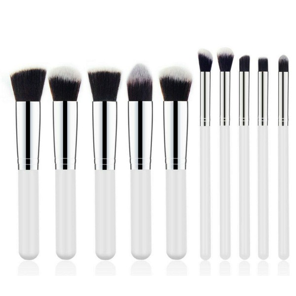 MAXPERKX 10pcs Kabuki Make up Brushes Set Eye shadow Blusher Face Buffer Powder Foundation Brush Contour Eyeshadow Makeup 10 Pieces Professional Cosmetic Foundation Tool (White & Silver)
