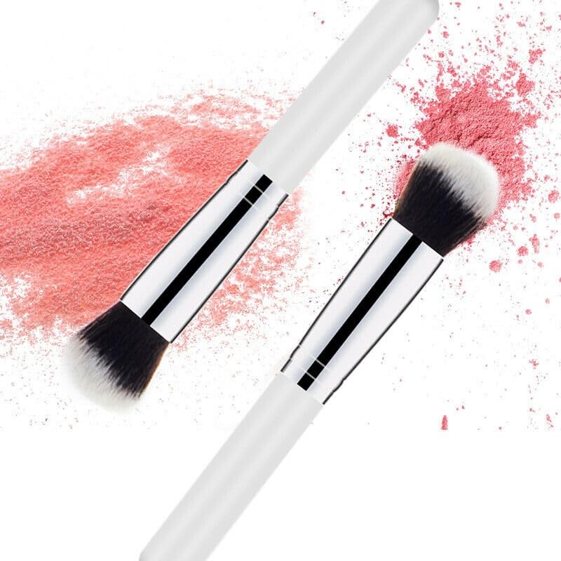 Flat angled: Blends foundation easily onto hard to reach areas of the face, fits all areas of the face seamlessly.