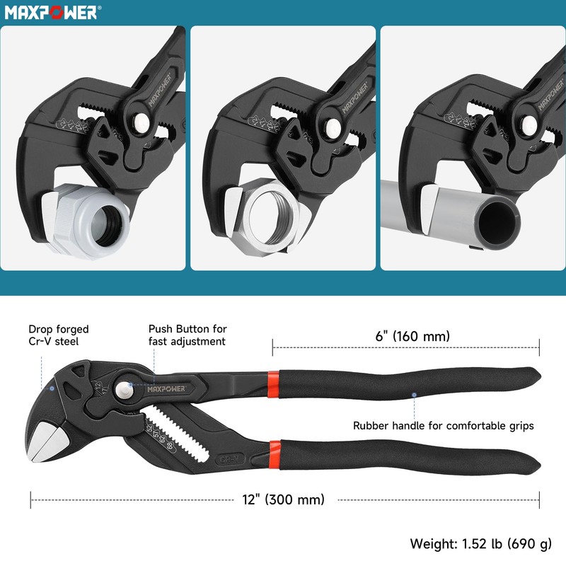 • MAXPOWER Pliers wrench is combining pliers and a wrench, suit for gripping, holding, pressing and bending workpieces