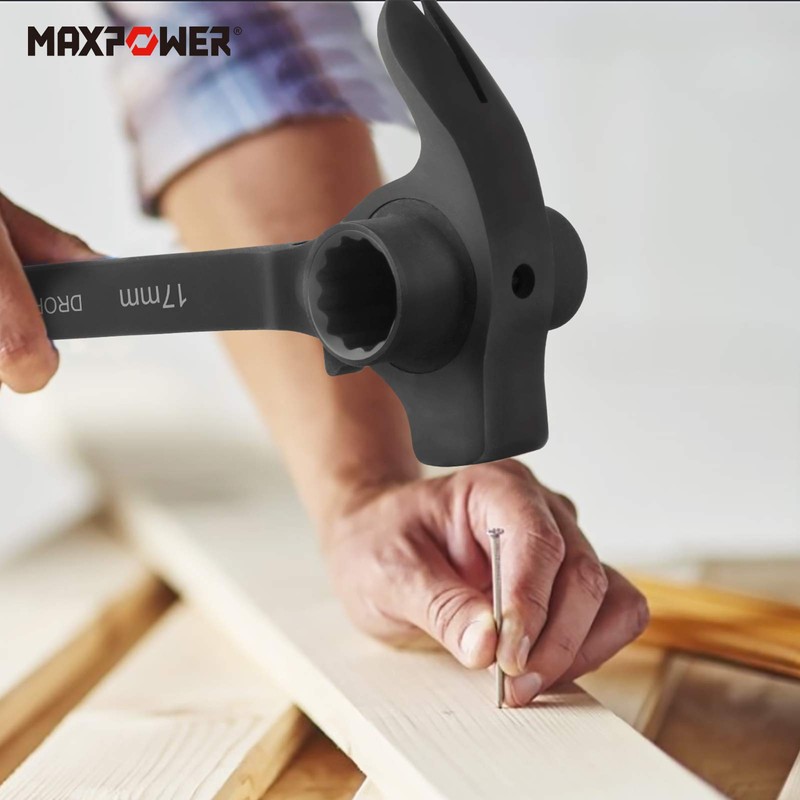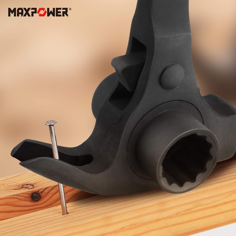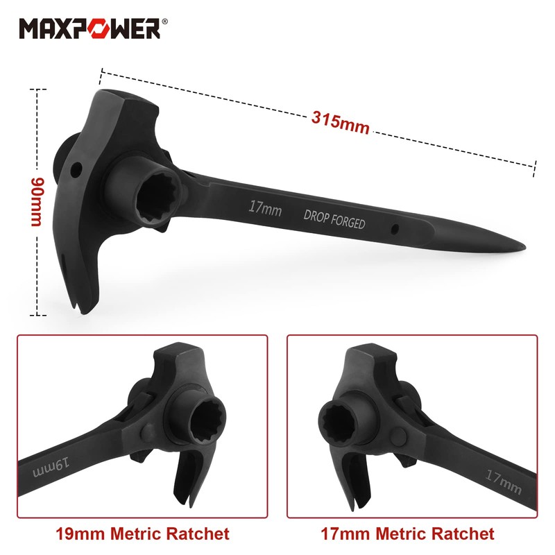 MAXPOWER Claw Hammer with 17mm x 19mm Scaffold Ratchet Spanner, Podger Spanner, Pry Bar and Nail Puller Function