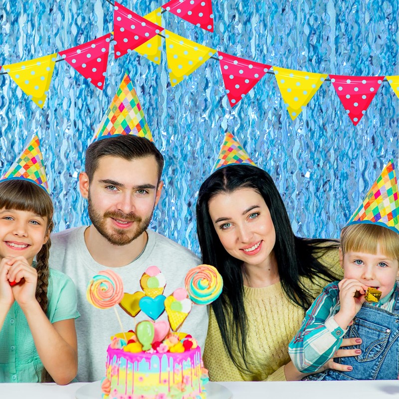 - Blue Streamers Backdrop:This wavy foil tassel curtain with glitter is a stunning decoration that can add a touch of charm and elegance to your party decorations. The wavy design of the blue foil tassel will create a glittering effect in your beach party decorations